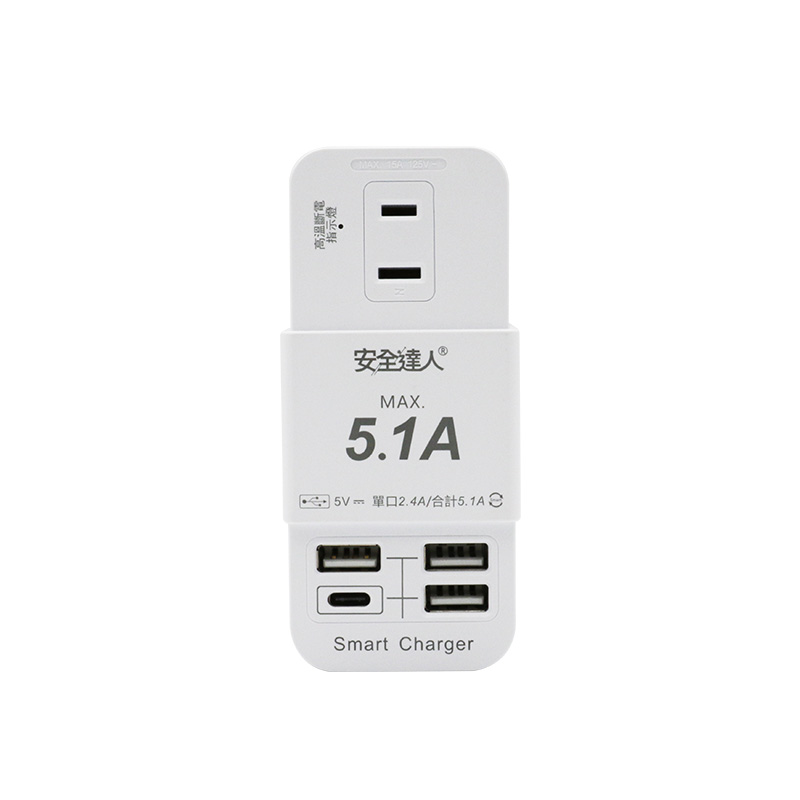 【安全達人R-20U】3插2P 5.1A USB分接器(壁插)