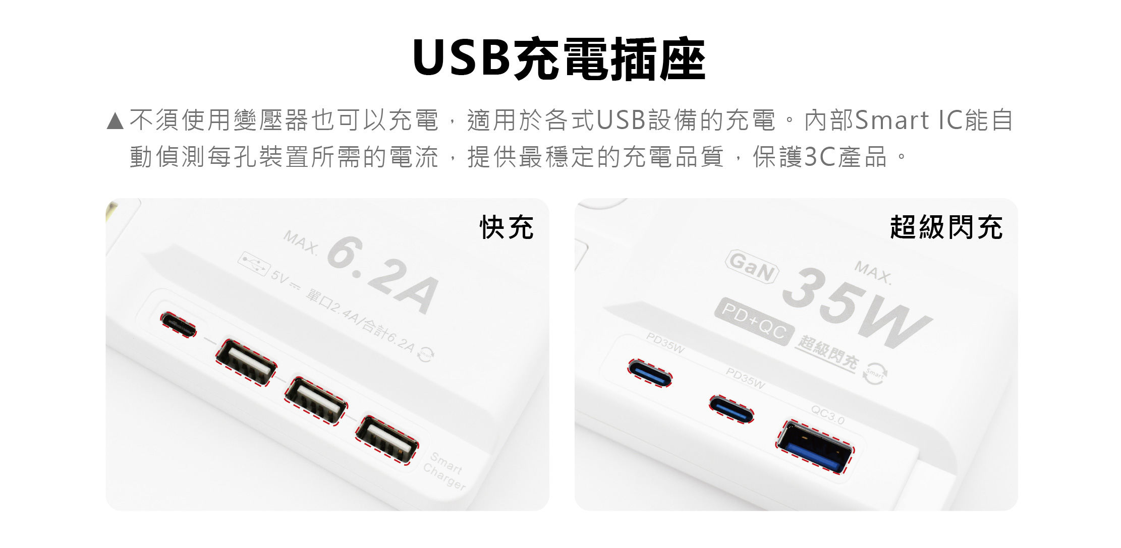 👍內部Smart IC能自動偵測每孔裝置所需電流